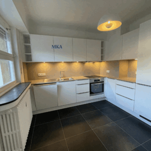 appartement lumineux sis au rez-de-chaussée surélevé d’un petit immeuble résidentiel à louer.