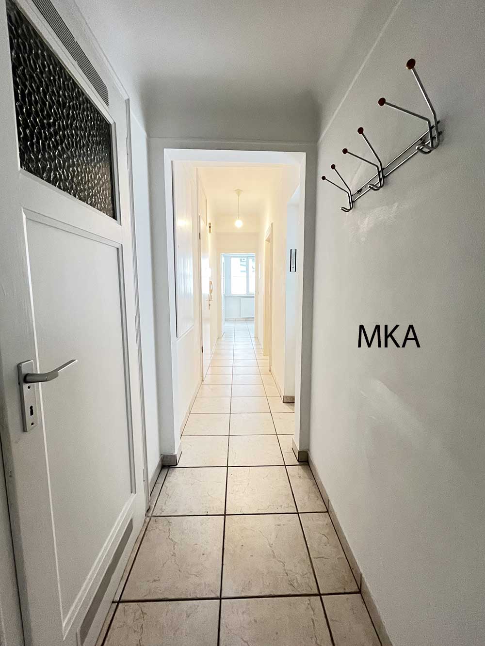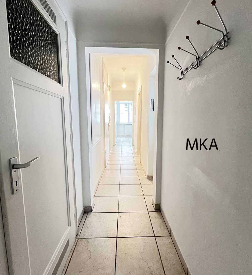 le bien, sis au 5ème et dernier étage d’un immeuble de 1928, rénové en 2000, avec ascenseur, est agencé comme suit: