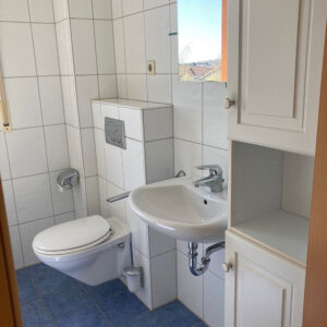 - Salle de bains avec baignoire, lavabo et WC