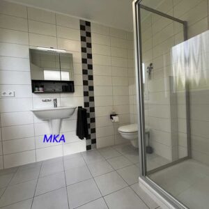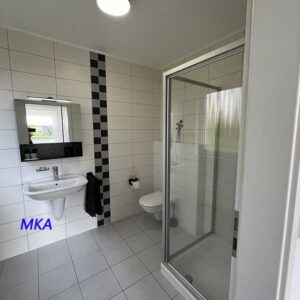 - une chambre à coucher et une salle de douche avec douche, lavabo et WC,