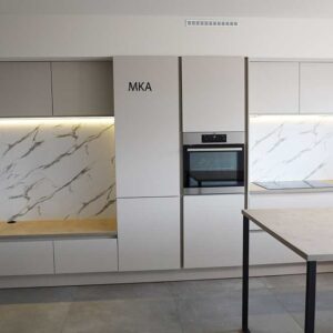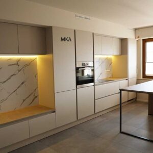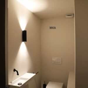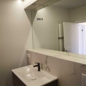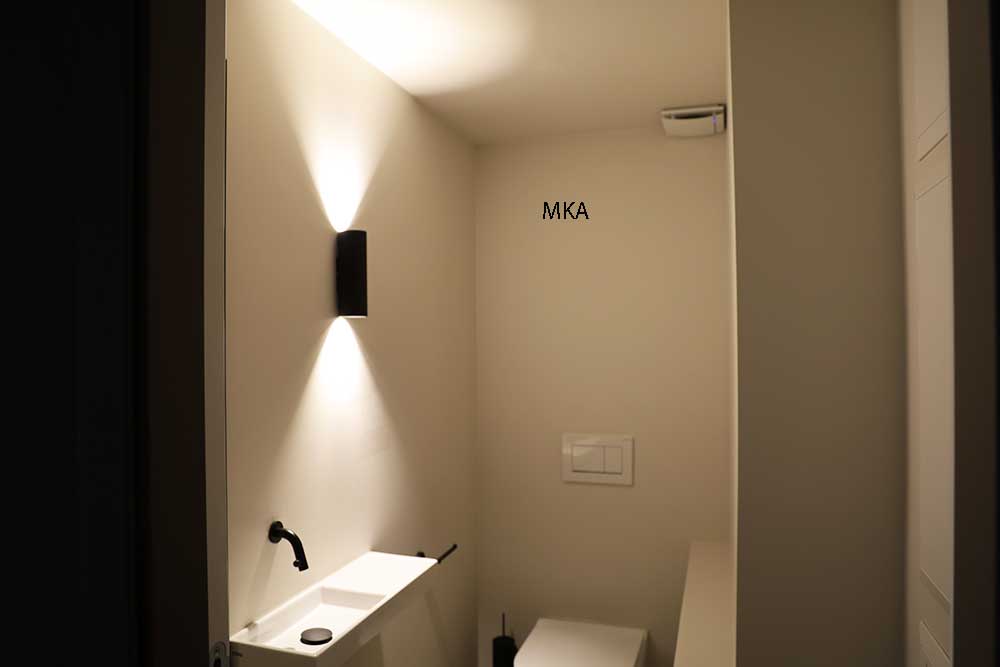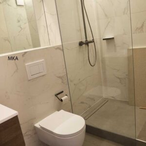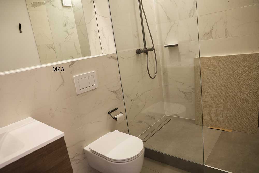 - salle de bains avec douche italienne, meublé encastré avec lavabo et WC,