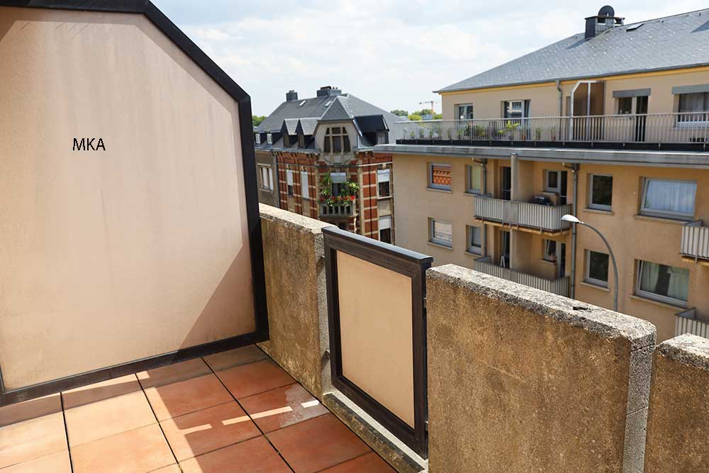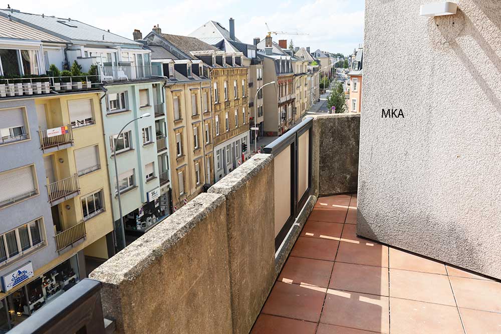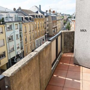 appartement lumineux , entièrement rénové et agencé par un architecte d’intérieur, avec grande terrasse orientée sud-ouest à louer au Limpertsberg à 100m du parking du Glacis et d’un arrêt de Tram.