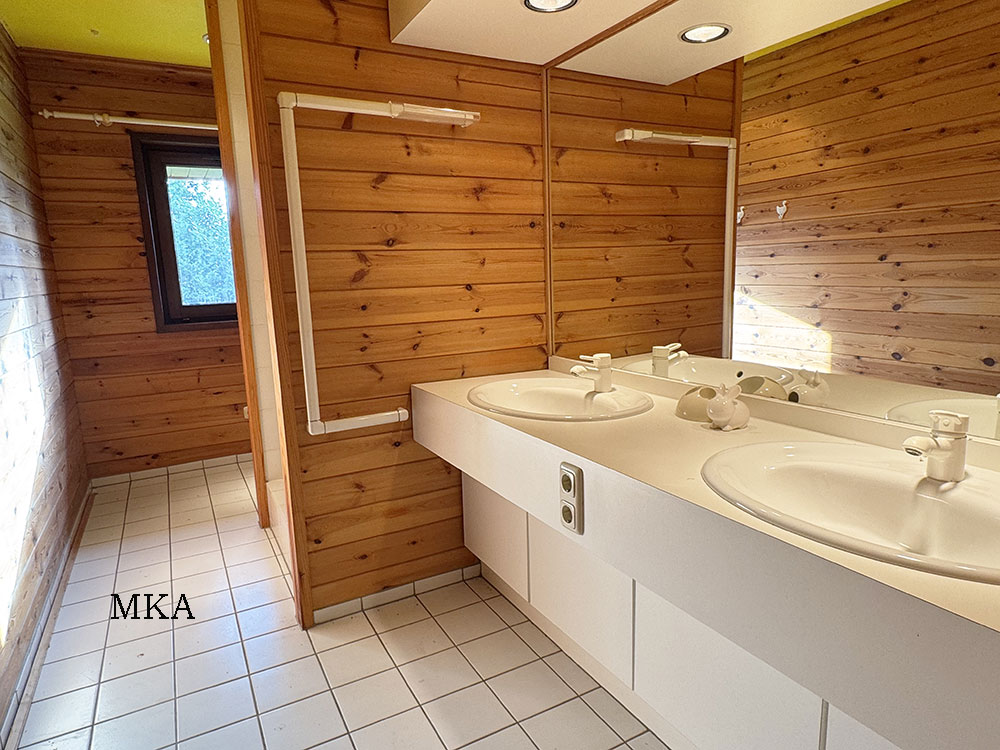 L’espace nuit comprend deux chambres et une salle de bains équipée de vasques et de WC.