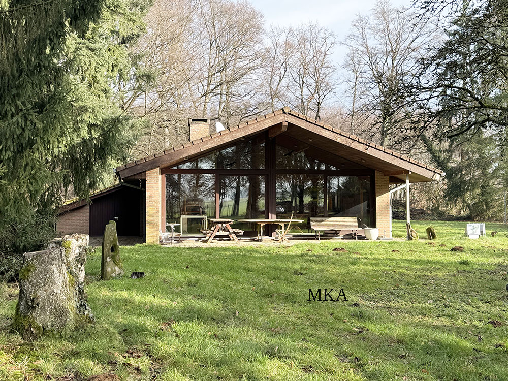 Niché au cœur d’un superbe terrain clos de ± 1 hectare (99,9 ares), ce charmant chalet en bois constitue un véritable refuge de détente, idéal pour les séjours de week-end et les vacances, loin de l’agitation urbaine.