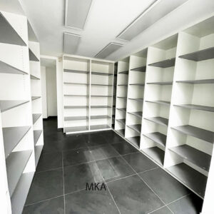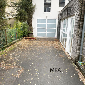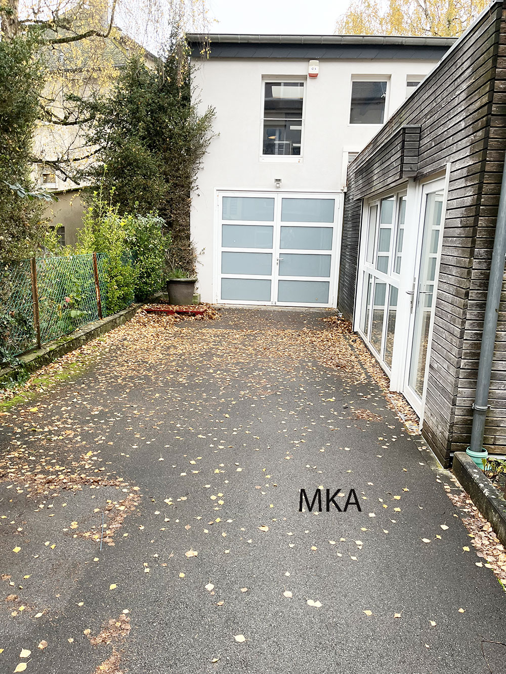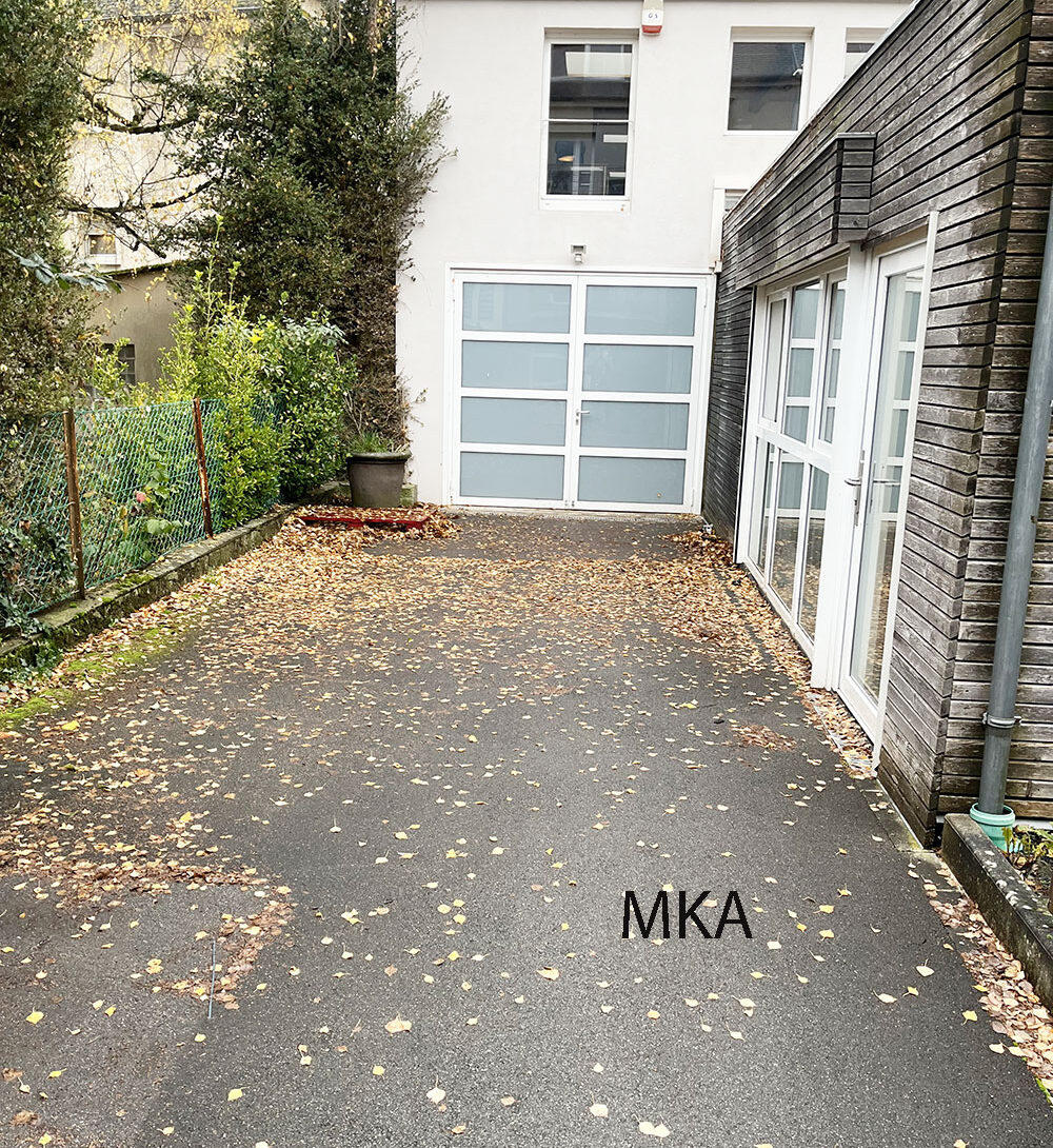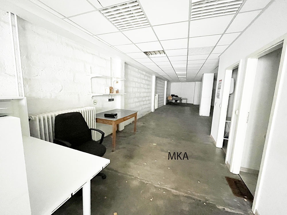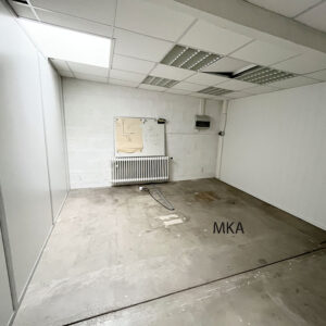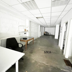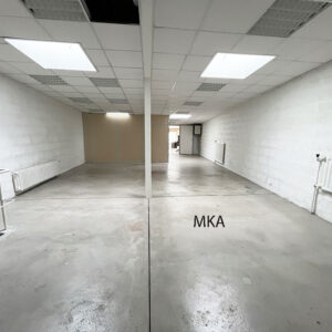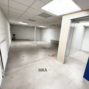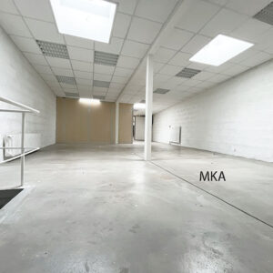 passage latéral donnant accès au dépôt sur deux niveaux et aux bureaux partiellement équipés, WC séparé, débarras et kitchenette.