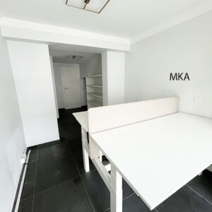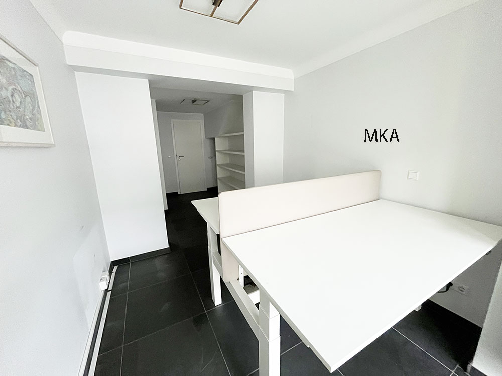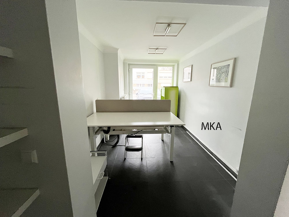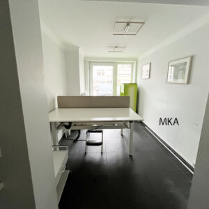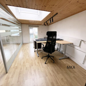 bureau individuel avec mobilier de bureau et étagères et WC séparé donnant sur la rue de la Barrière