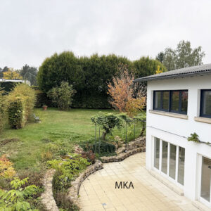 Nichée au calme d’une impasse résidentielle à Bridel, cette villa d’architecte entièrement rénovée séduit par son élégance contemporaine et son magnifique jardin fleuri et arboré, orienté sud-ouest.