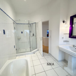 Master suite with large bedroom, dressing room, and bathroom featuring a bathtub, shower, and WC