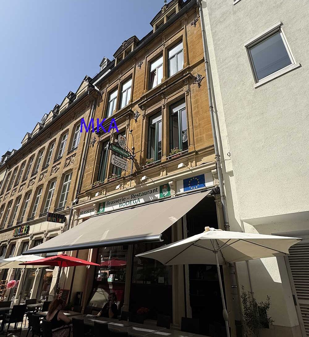 Maison de rapport datant d’environ 1900, comprenant un commerce (restaurant) au rez-de-chaussée et au premier étage, idéalement située dans la zone piétonne du centre-ville, à proximité immédiate de la Place d’Armes.