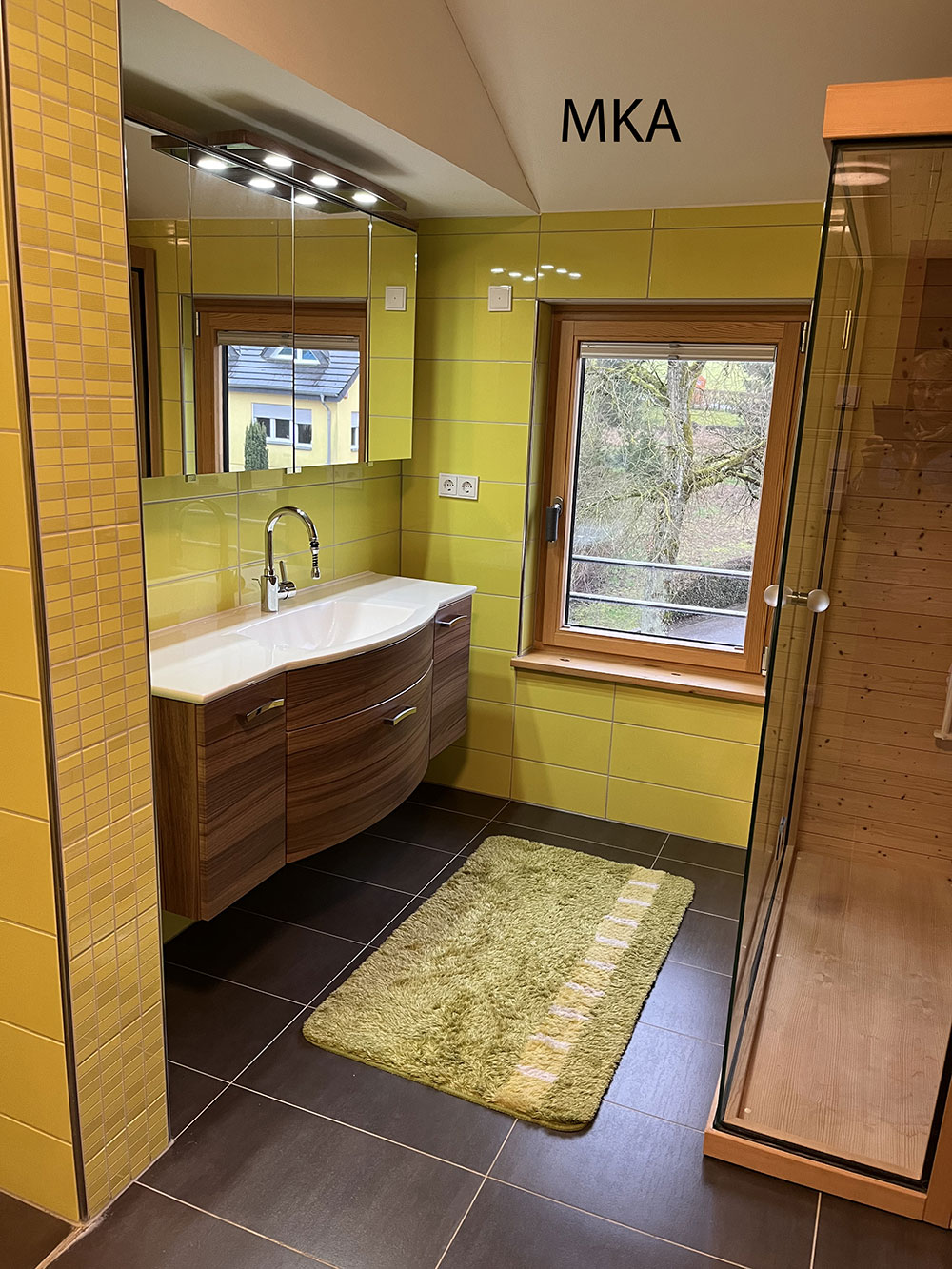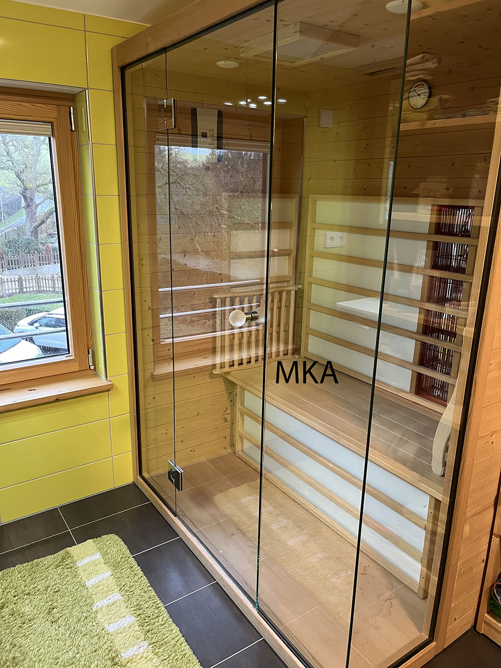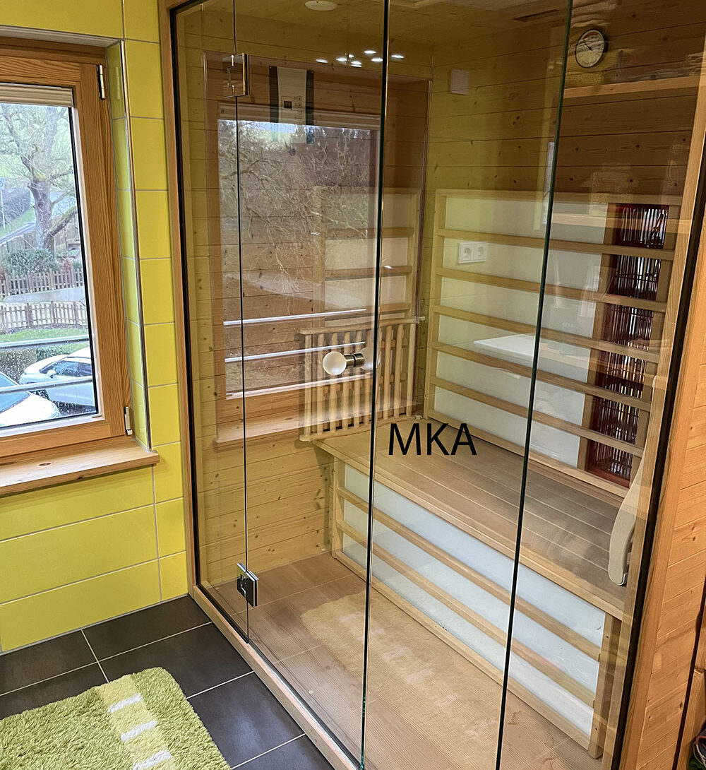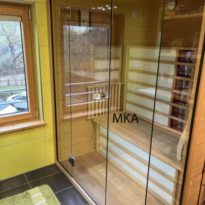 - salle de douche avec douche italienne, grand vasque et cabine infrarouge;