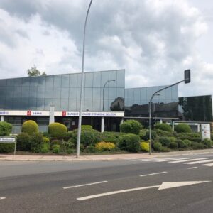 surface de bureaux/ commerciale lumineuse au rez-de-chaussée, avec emplacements parking extérieurs pour occupants et clients, d’un immeuble d/architecture moderne mixte à louer.
