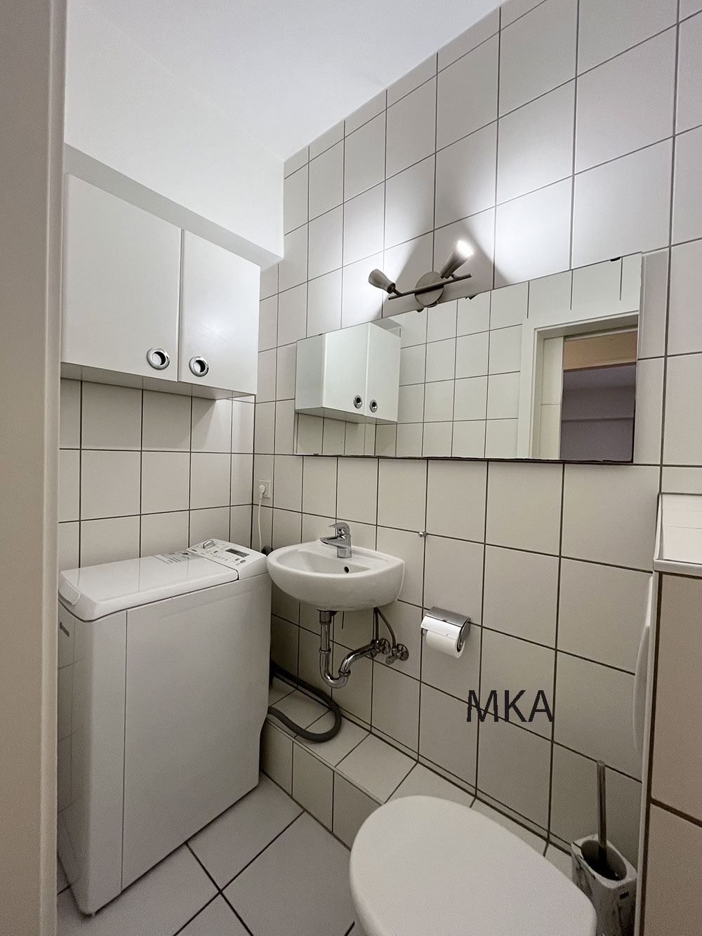 Separate toilet with hand basin and laundry corner