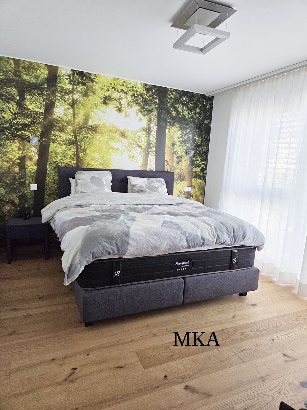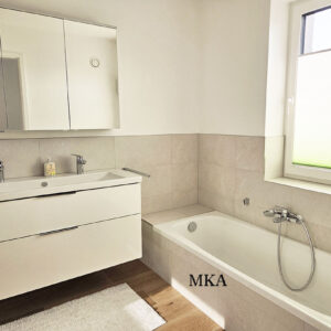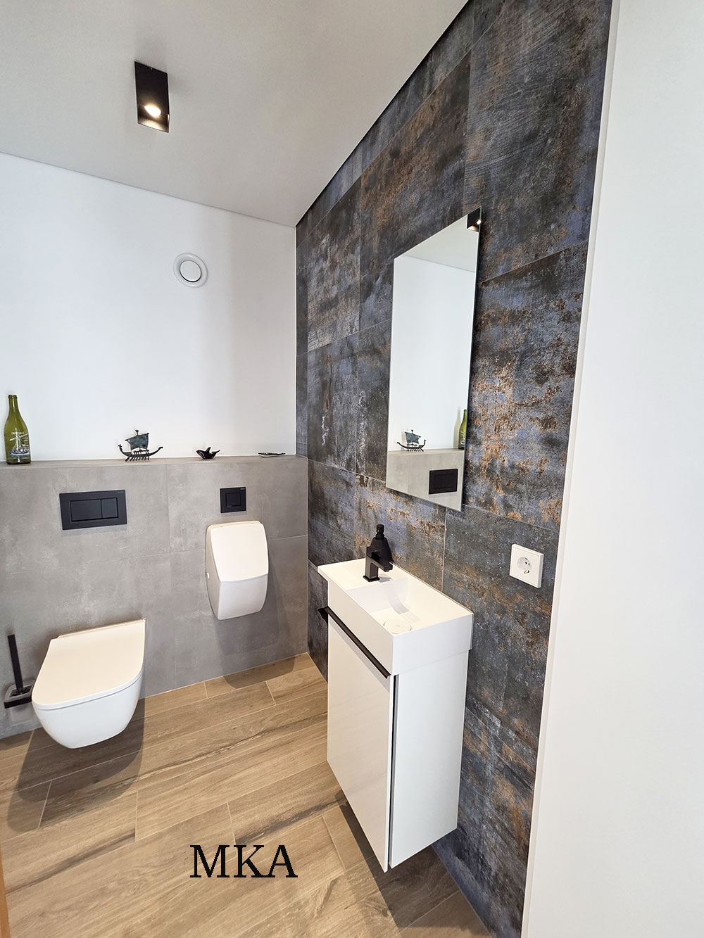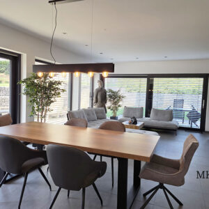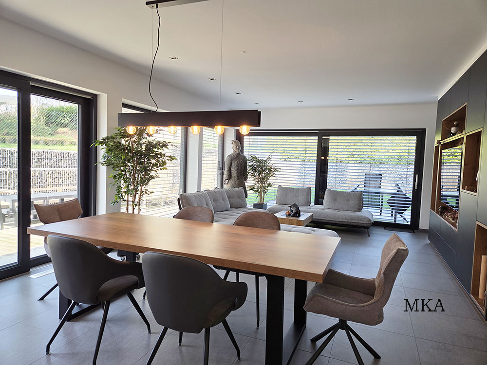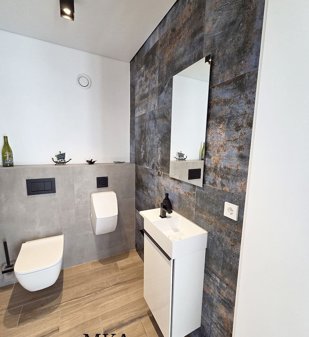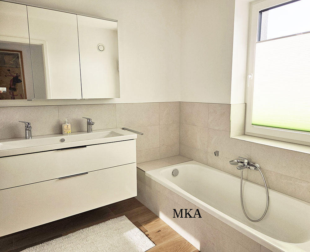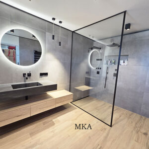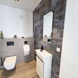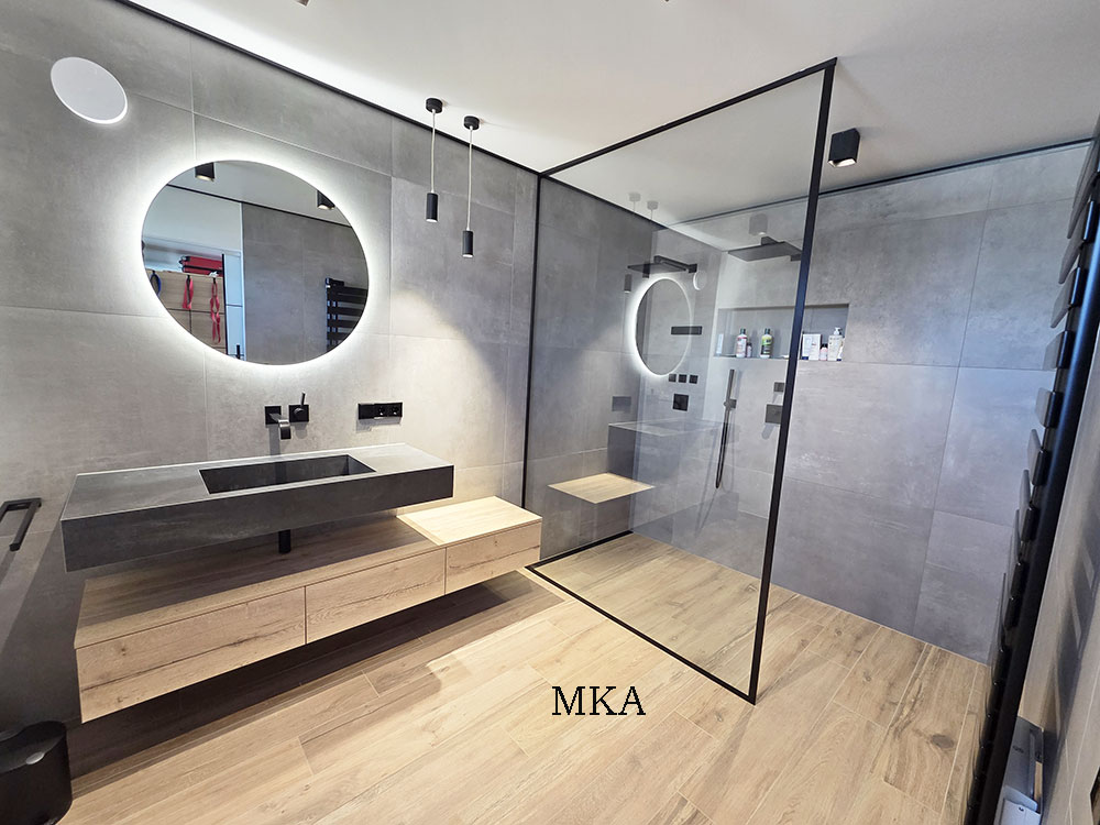 - Revêtements en carrelage grand format et parquet massif en chêne