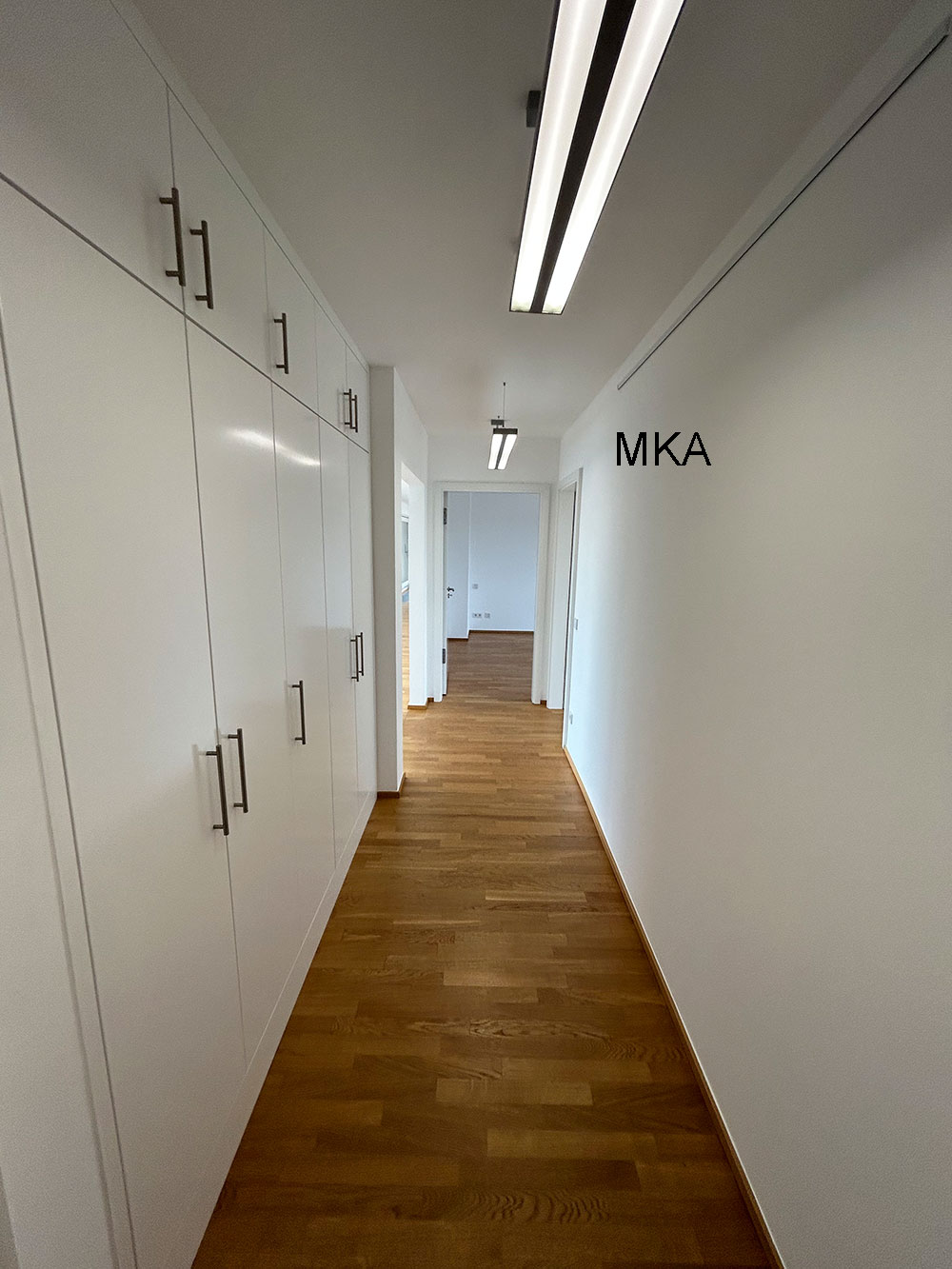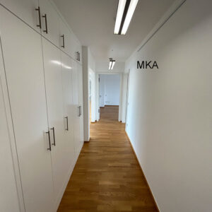 – hall d’entrée avec WC visiteur et armoires encastrées avec revêtement en chêne massif