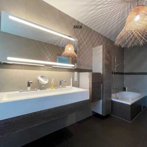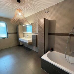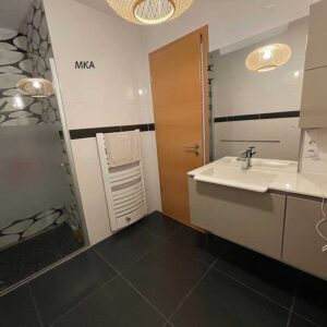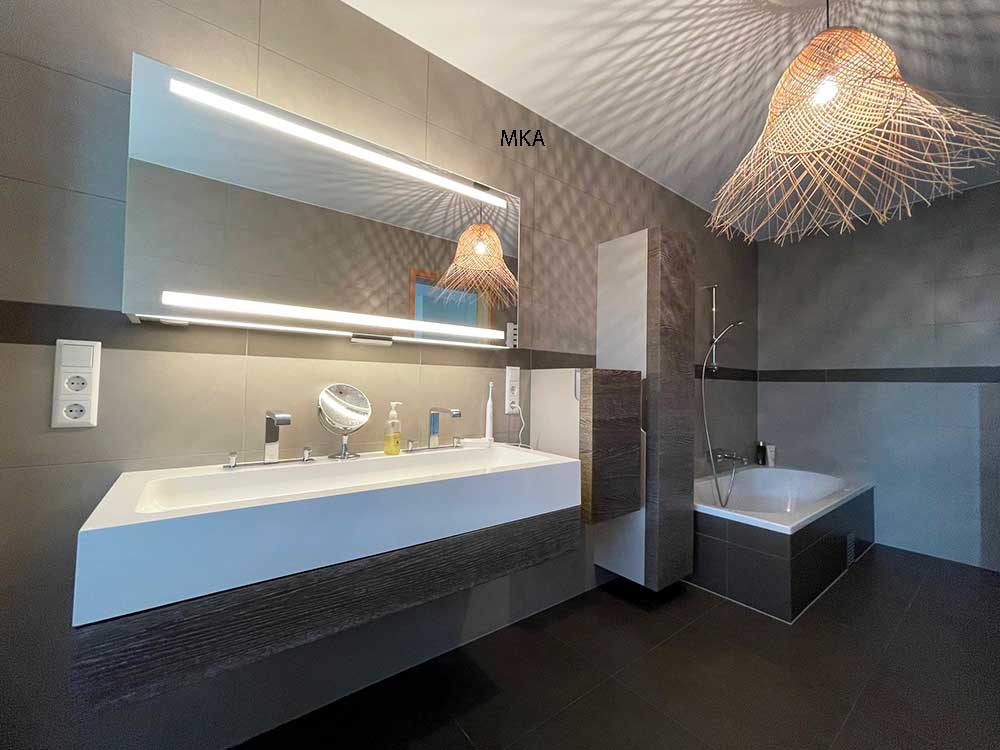 - suite parentale avec dressing équipé et salle de bains avec baignoire avec jacuzzi, double vasque, WC et fenêtre et accès à la grande terrasse