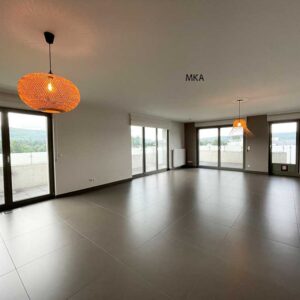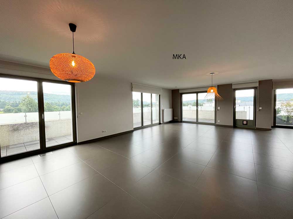 appartement lumineux, non meublé, avec deux grandes terrasses panoramiques exposées est-sud-ouest à louer dans un immeuble résidentiel de construction récente (2012), situé dans une impasse à Steinsel